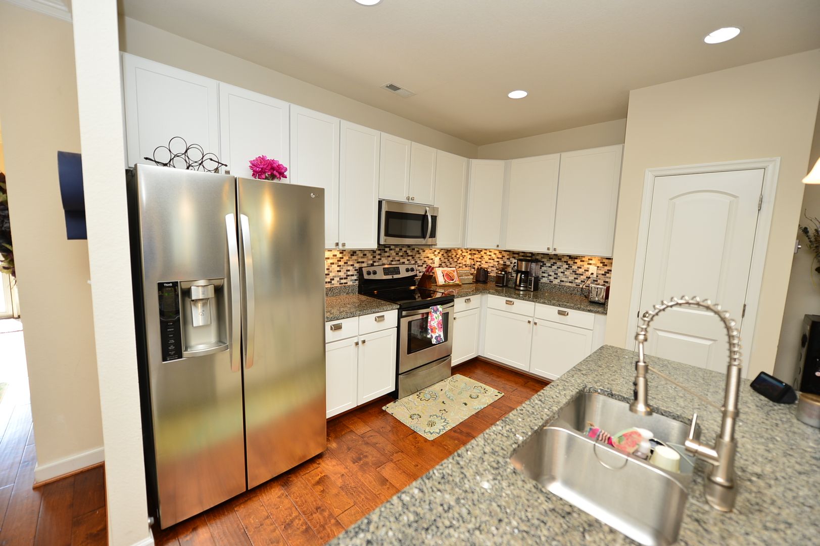 Beautiful townhome with upgraded finishes throughout, located in sought after Warrington Hall. Open floor plan with full car garage. Spacious unit with gourmet kitchen open to family room. Spacious bedrooms. The community offers walking paths, clubhouse, pool, tennis courts, basket ball court, playgrounds and open space for events.